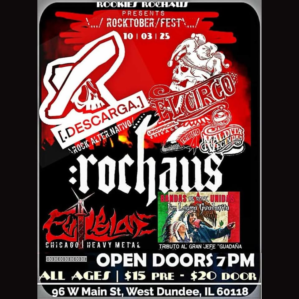 in onRookies Rochaus Presents Spanish Rocktober Fest with El Circo, Evil Blade, Descarga, Bandas Rock Show begins 8 pm All ages…