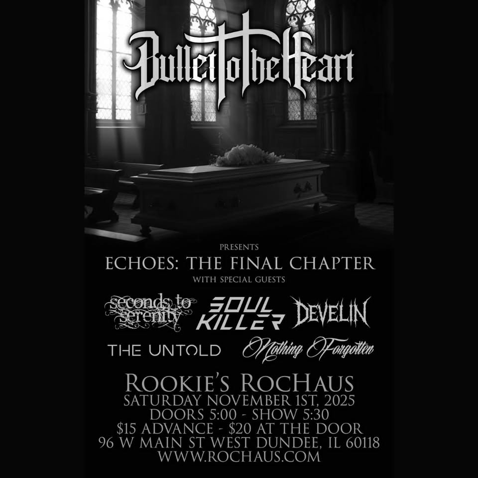 in onRookies Rochaus presents Bullet to the Heart – Echoes: The Final Chapter, with special guest bands: Seconds To Serenity, Soulkiller,…